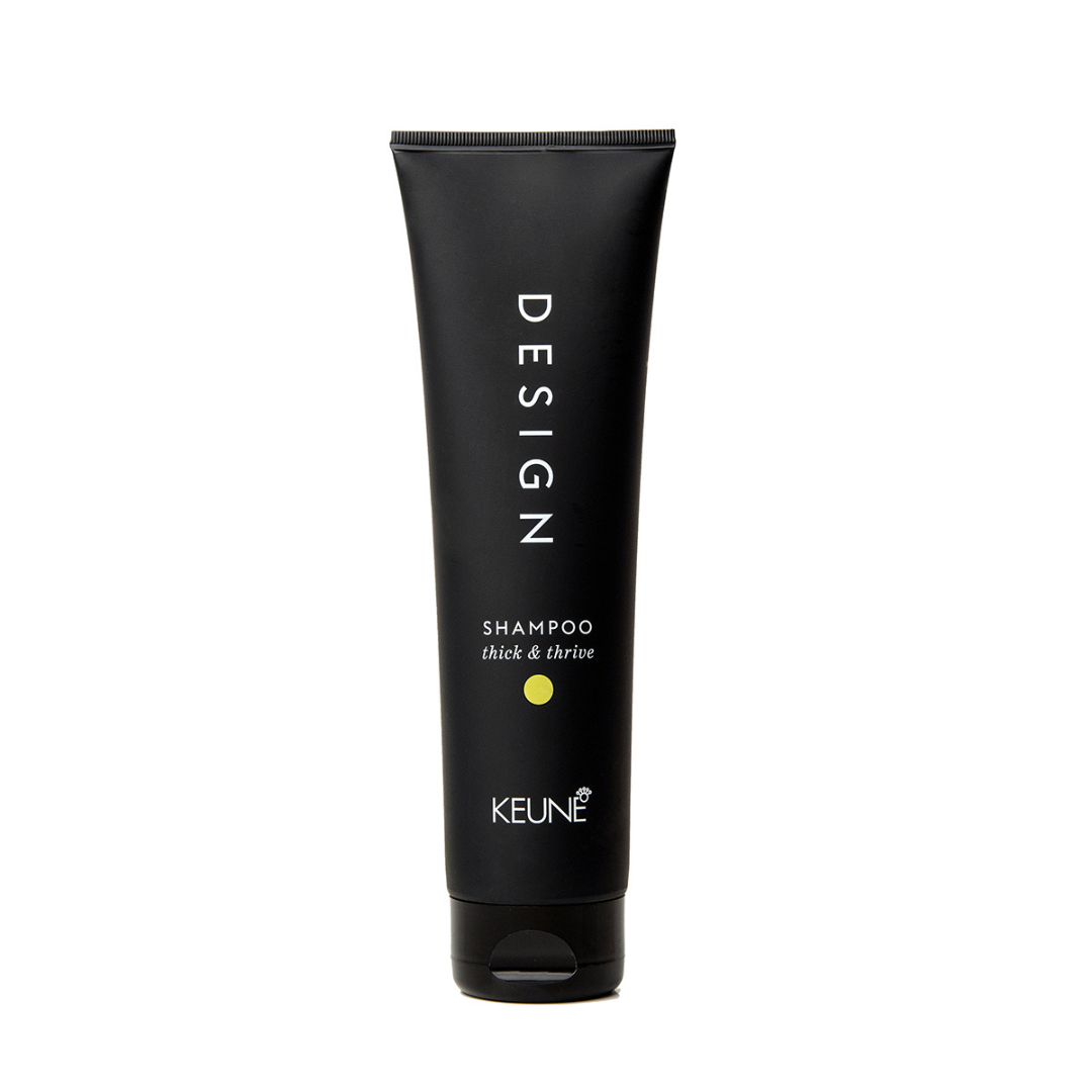 Keune Design Thick and Thrive je šampon za krepitev las in zmanjšanje njihovega izpadanja. Vsebuje vitamin H, ki izboljšuje kakovost keratina v laseh – od znotraj navzven – ter jih tako okrepi. Z redno uporabo tega šampona se izpadanje las postopoma zmanjšuje.
